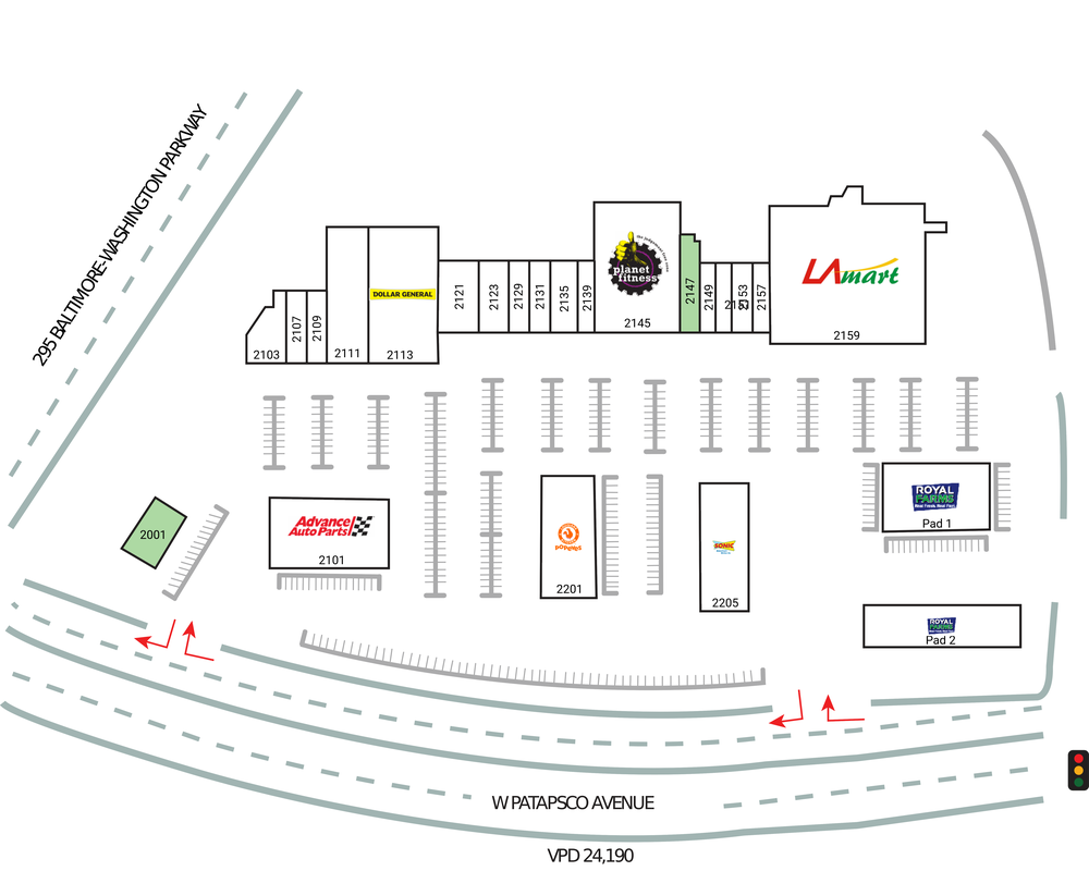 - The center is located in a significantly under-retailed market and is accessible from multiple highways and local roads. Royal Farms, numerous restaurants, and need-based retail make the shopping center a destination for the 21,185 vehicles that pass West Patapsco Avenue daily.