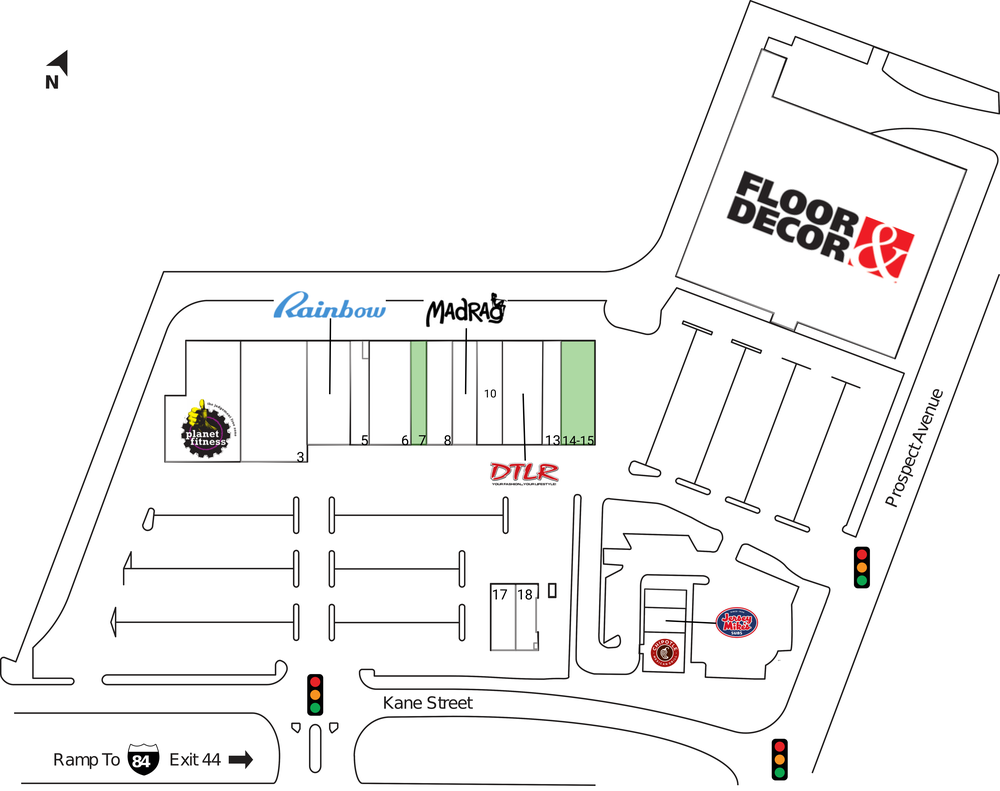 - Located right off I-84 at exit 44; two signalized entrances