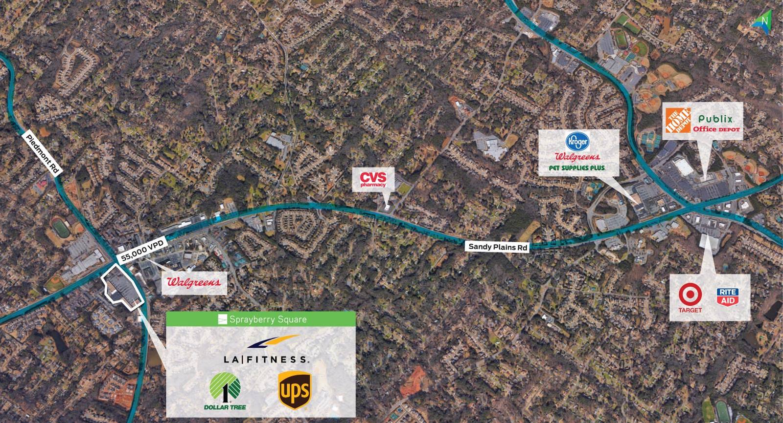 - In the affluent East Cobb neighborhood of Marietta - traffic count of 55,000 VPD